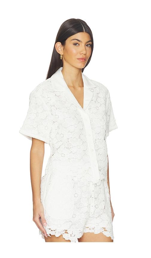 SIMKHAI GLENN LACE CAMP SHIRT IN IVORY.