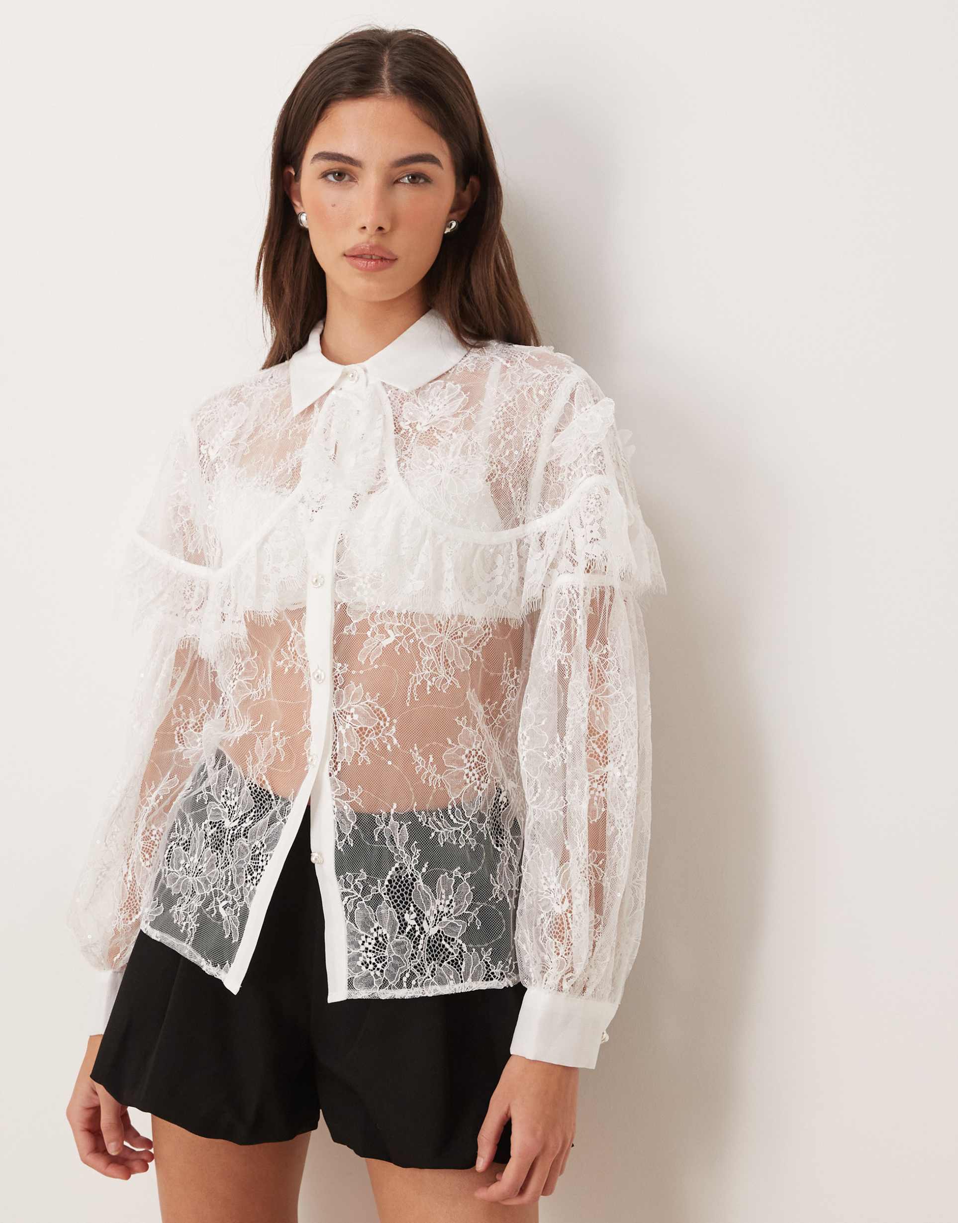 DREAM SISTER JANE PROMISE LACE FRILL DETAILING SHIRT IN WHITE
