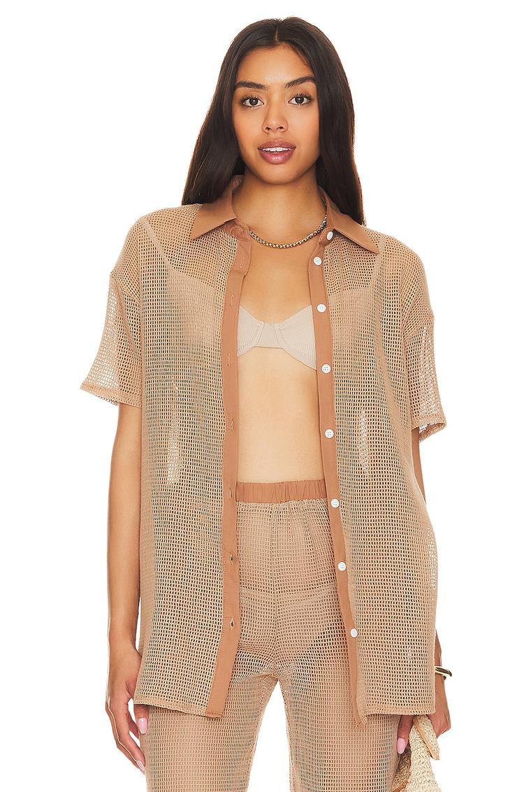 The Hyams Shirt features a relaxed fit and hip-length silhouette crafted from an open knit crochet fabric in a matte beige hue. Its half sleeves and classic turn-down collar complement the breezy, sheer design, making it perfect for layering over swimwear or casual outfits. With front button closure and a lightweight cotton-polyester blend, this shirt transitions effortlessly from beach days to casual brunches and vacation strolls. Embrace effortless style with this modern shacket that balances comfort and chic appeal for spring through autumn wear.