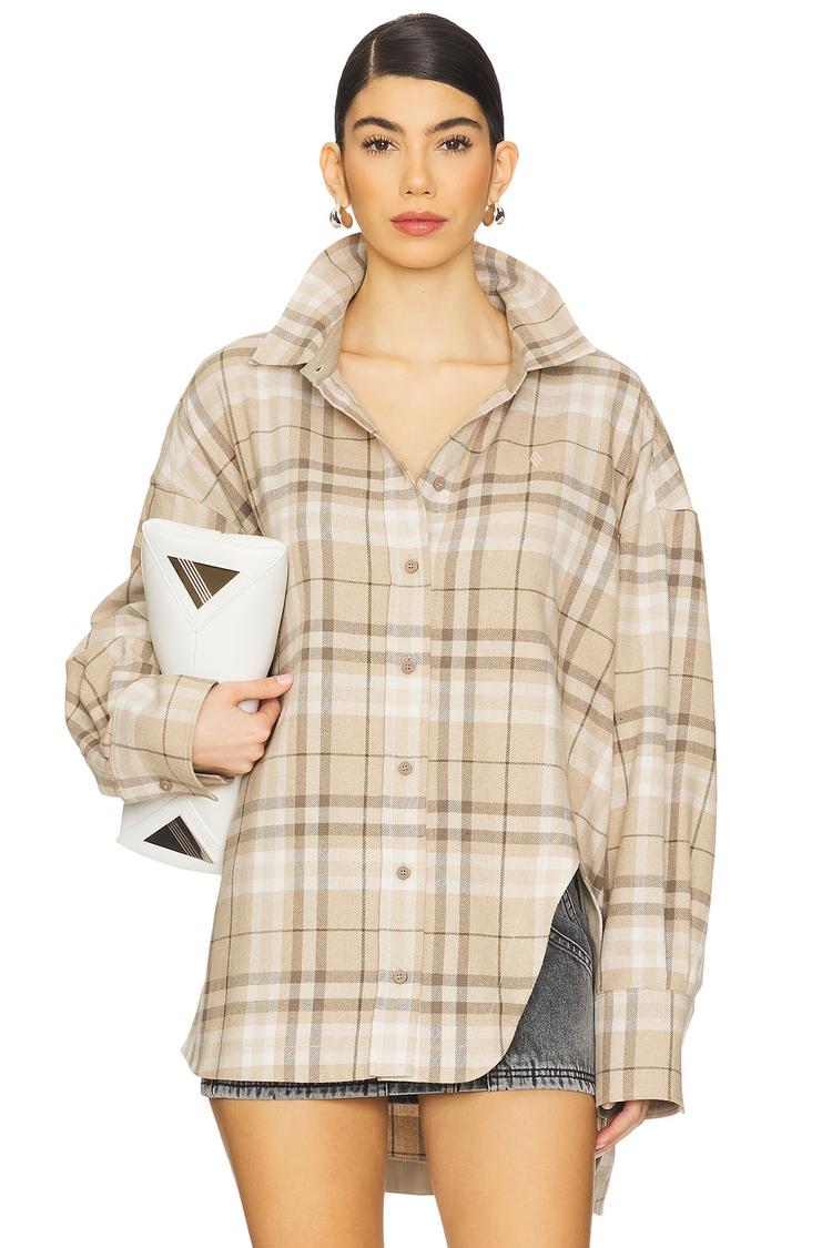 beige plaid oversized shirt