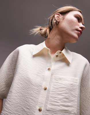 TOPSHOP CROP LIGHTWEIGHT TWILL SHIRT IN IVORY