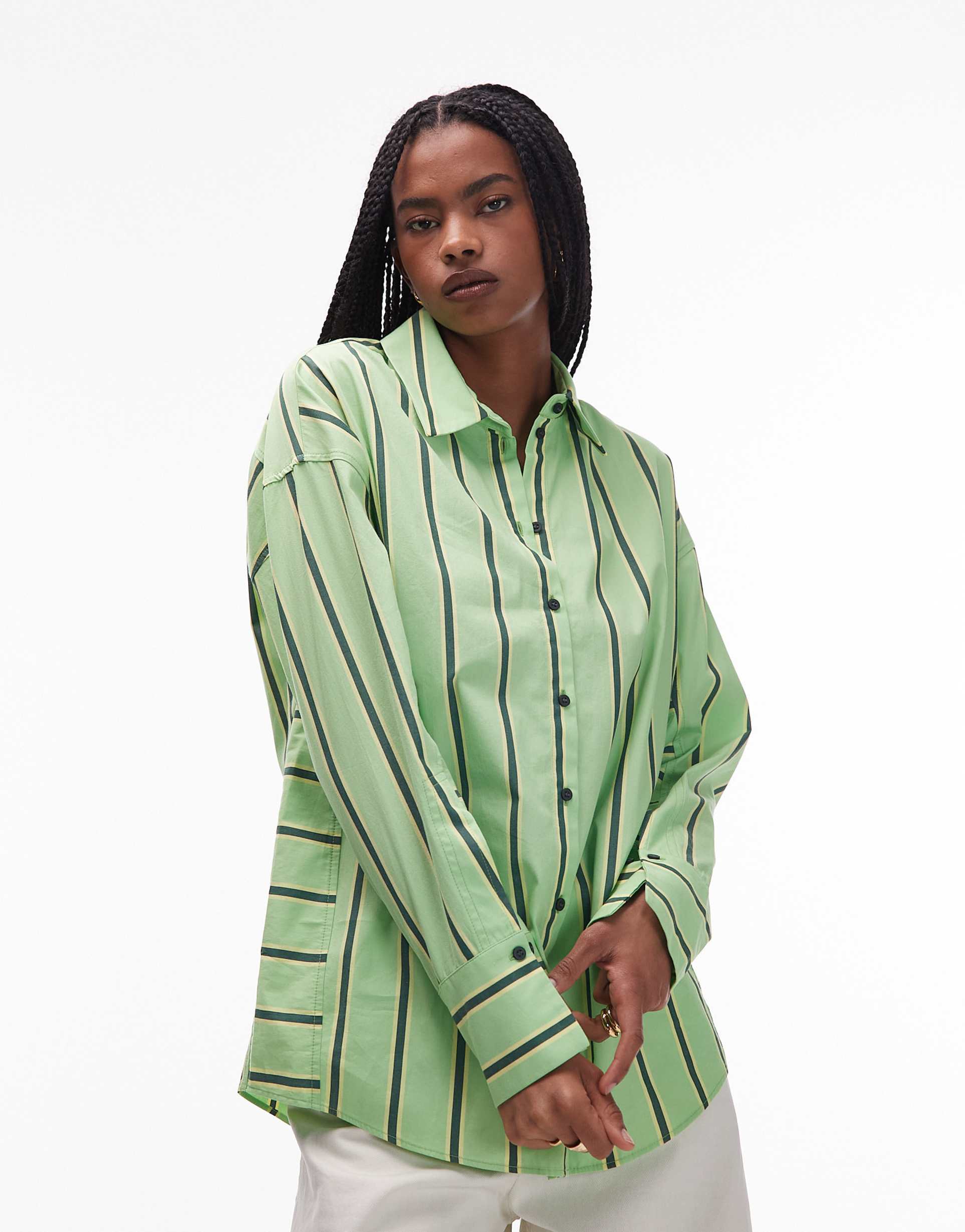 TOPSHOP OVERSIZED SHIRT IN GREEN AND YELLOW STRIPES