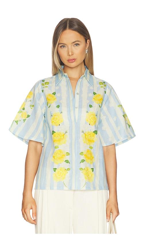 VERANDAH BLOOMING ROSES AND STRIPES SHIRT IN BABY BLUE,YELLOW.