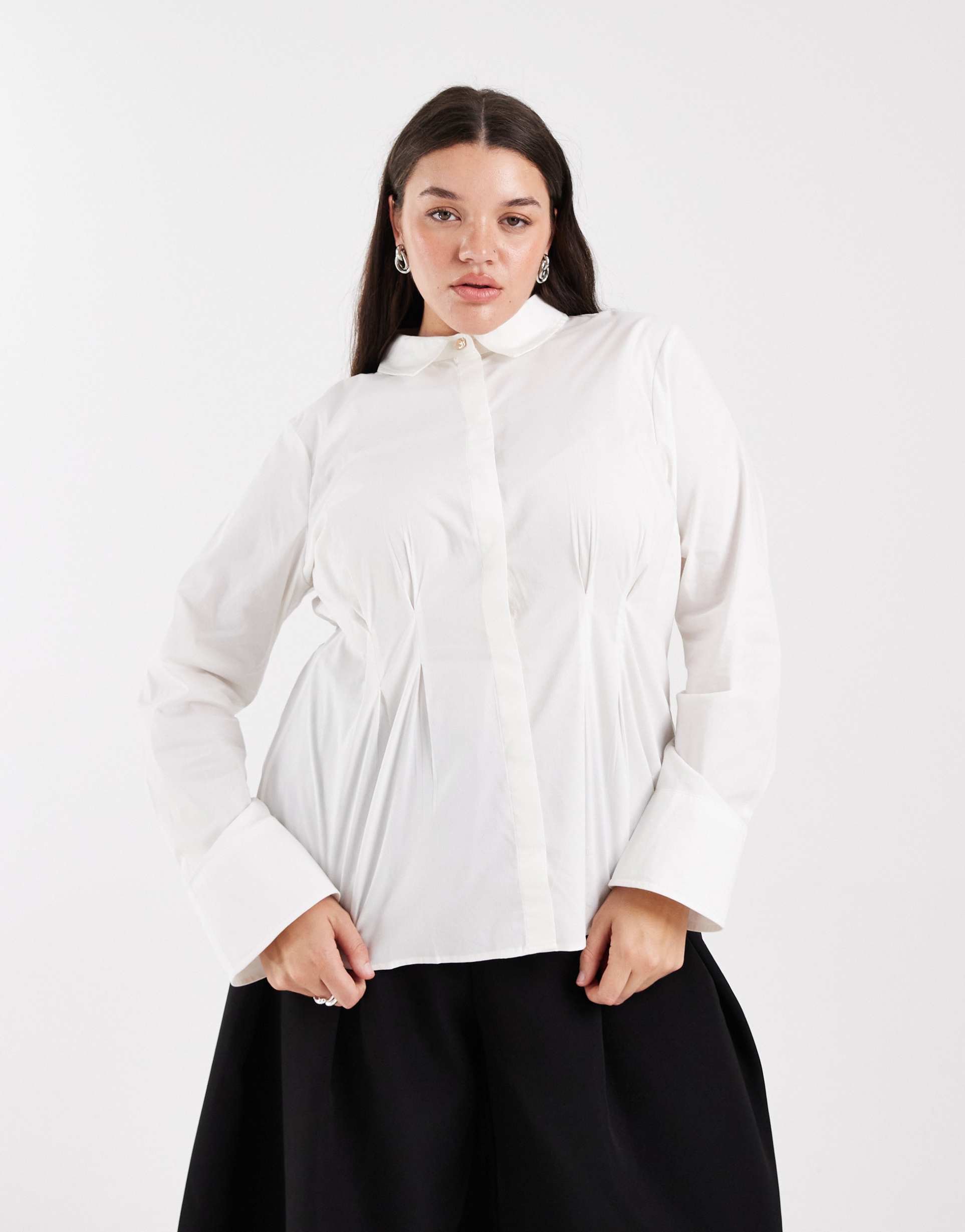 VERO MODA CURVE CINCHED WAIST SHIRT IN WHITE