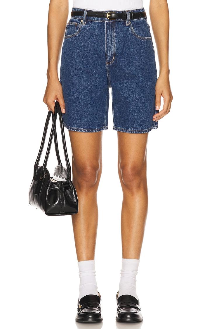 Effortless, timeless denim for warm days and easy weekends. The Carrie Short sits high at the waist with a clean, structured silhouette that flatters and pairs with everything from a tucked tee to a blazer. Made in a sturdy midweight denim—91% cotton with a hint of viscose and polyester for soft drape—these shorts feature a classic five-pocket front and back logo patch, a zip fly with button closure, and a gently faded finish that nods to worn-in charm. Dress them with loafers and a crisp shirt for brunch, or sneakers for city‑savvy errands. A versatile, easy-edit essential for sun-filled days.