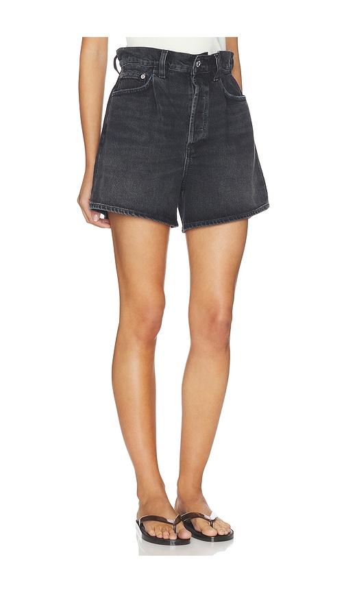 AGOLDE LYONNE CINCHED WAIST SHORTS IN BLACK.