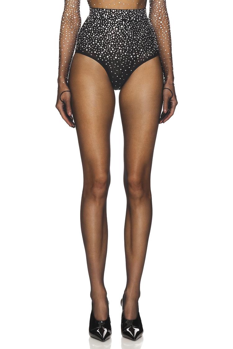 Understated glamour meets high-fashion edge in this Crystal Mesh Brief from Alex Perry. A black mesh base encrusted with rhinestones catches the light with every movement, delivering a hint of sparkle against the skin. The silhouette is a sleek, fitted brief with a mid-rise waistband and a hidden back zipper for a seamless finish. Crafted from a nylon-elastane blend, the stretch mesh offers a soft, supportive feel while keeping the look ultra-covetable. Perfect for luxe lounge or layering under a sleek evening look—pair with the coordinating top or a sheer party dress for a daring night out.