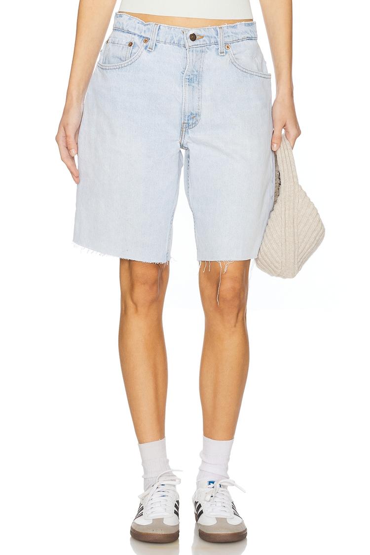 Discover a laid‑back denim essential with unmistakable vintage appeal. These Boy Short Bermuda shorts are cut in 100% cotton denim with a midweight, rigid feel that holds its shape through every summer plan. The light, worn-in blue and subtle distressing deliver a timeless, lived‑in vibe, while a classic zip fly with button closure and a five‑pocket design keep function front and center. The knee‑length, relaxed silhouette moves with you, finished by a raw‑cut hem for a modern, imperfect edge. Perfect for easy days, city strolls, and laid‑back getaways, they pair brilliantly with tees, hoodies, or cropped knits.