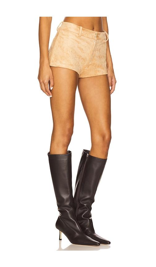 AMANDA UPRICHARD X REVOLVE CARESSE SUEDE SHORTS IN TAN.