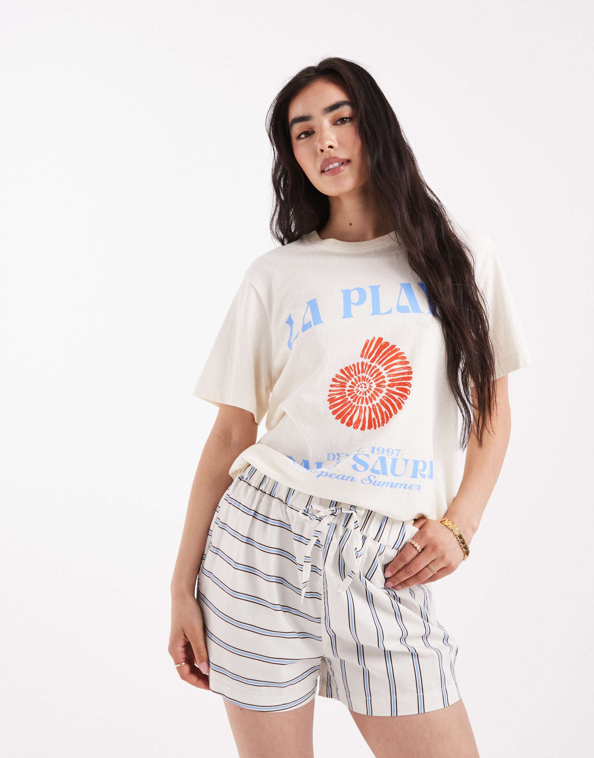 ASOS DESIGN COTTON POPLIN BOXER SHORTS WITH CONTRAST DIRECTION STRIPES