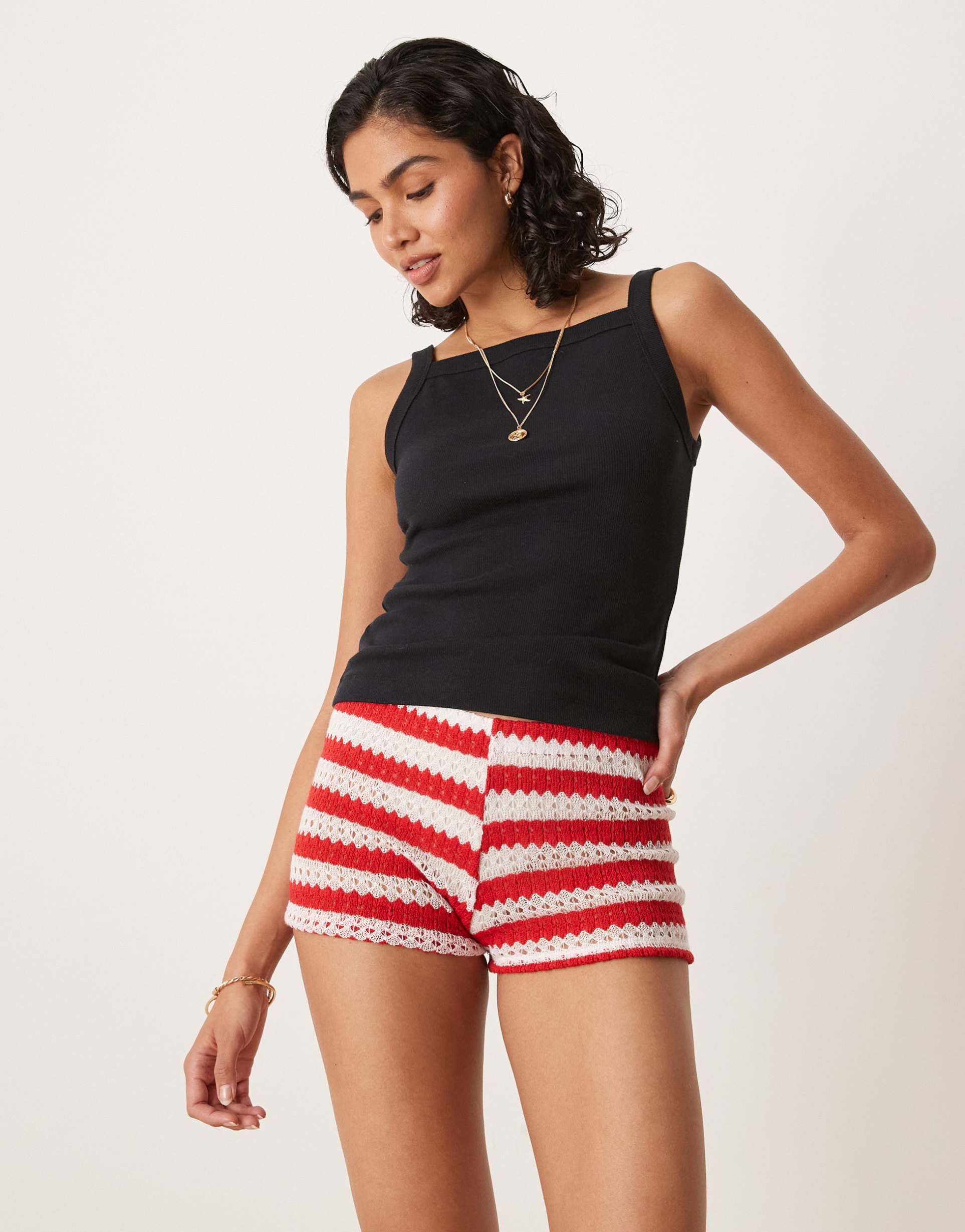 ASOS DESIGN CROCHET MICRO SHORTS IN RED AND WHITE STRIPE