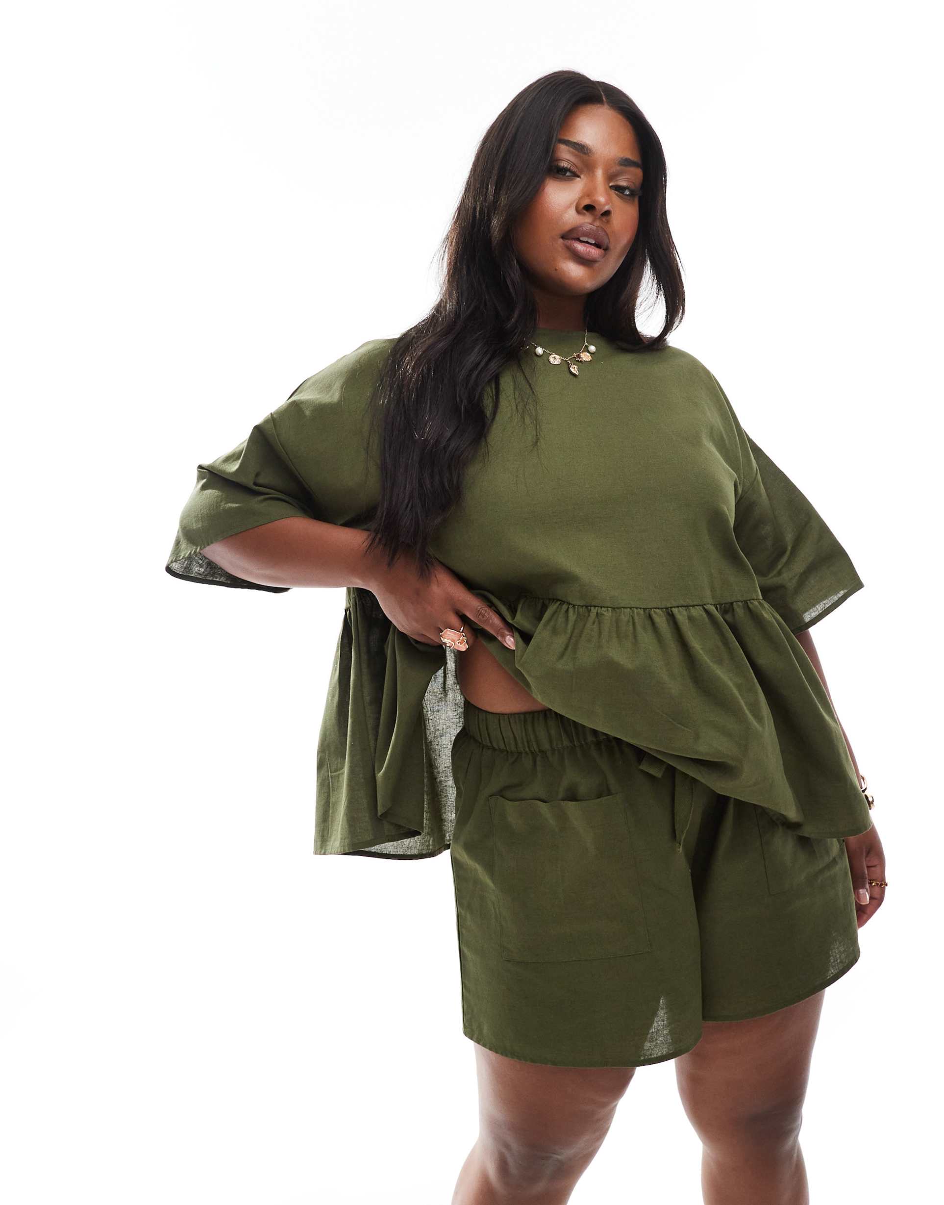 ASOS DESIGN CURVE POCKET DETAIL SHORT IN KHAKI - PART OF A SET