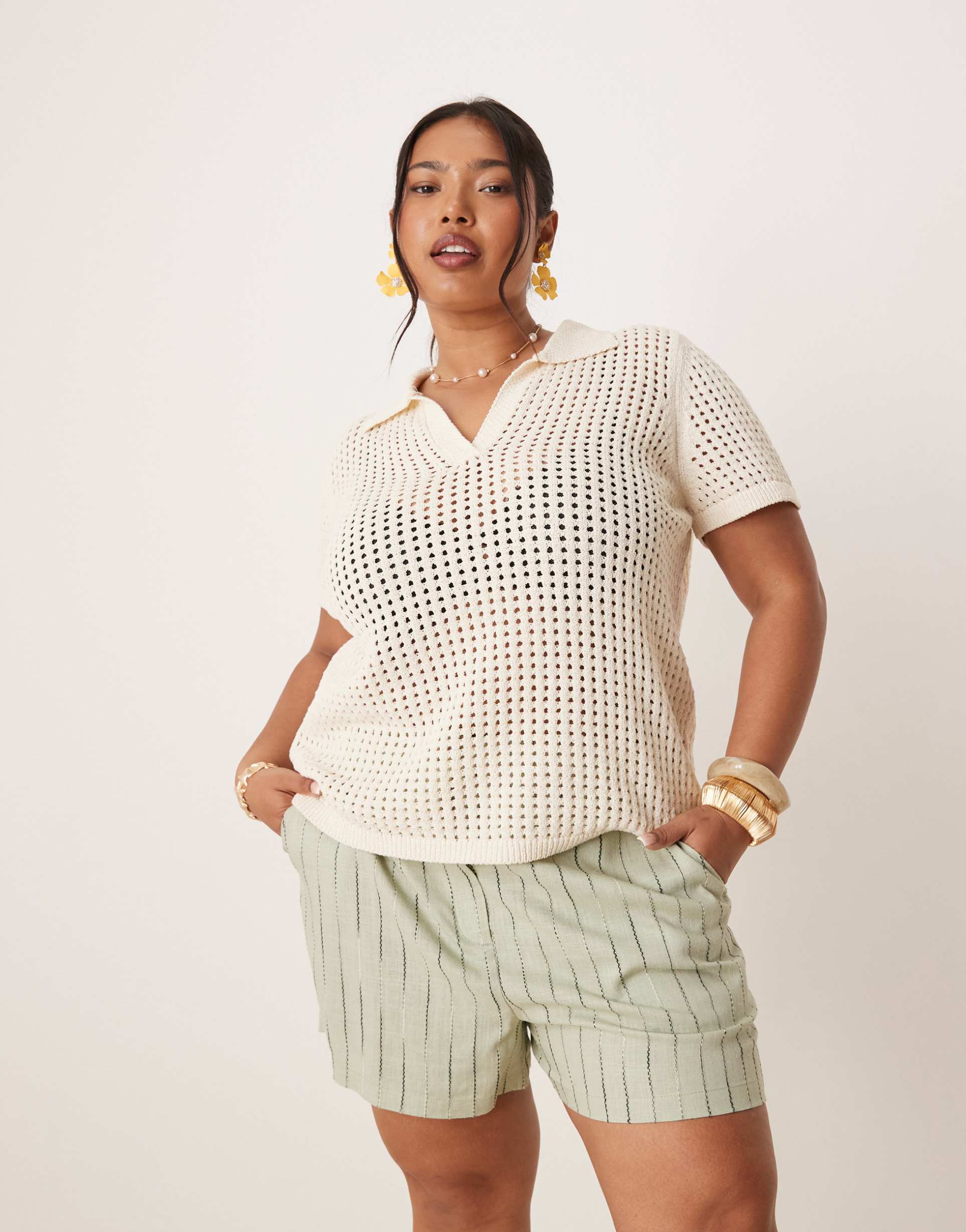 Effortless ease meets vacation-ready polish in these ASOS Curve relaxed dad shorts in sage linen. The high-rise, concealed fly and flat-front waistband deliver a streamlined, comfortable fit, while the breathable linen-viscose blend and light-weight feel keep you cool all day. A sage squiggle stripe adds visual texture without overpowering, finished with practical side pockets and a classic Bermuda length that hits just above the knee. Style them with a breezy blouse and sandals for brunch, or a knit tee and sneakers for city errands. Versatile, easygoing and effortlessly chic for everyday warm-weather wear.