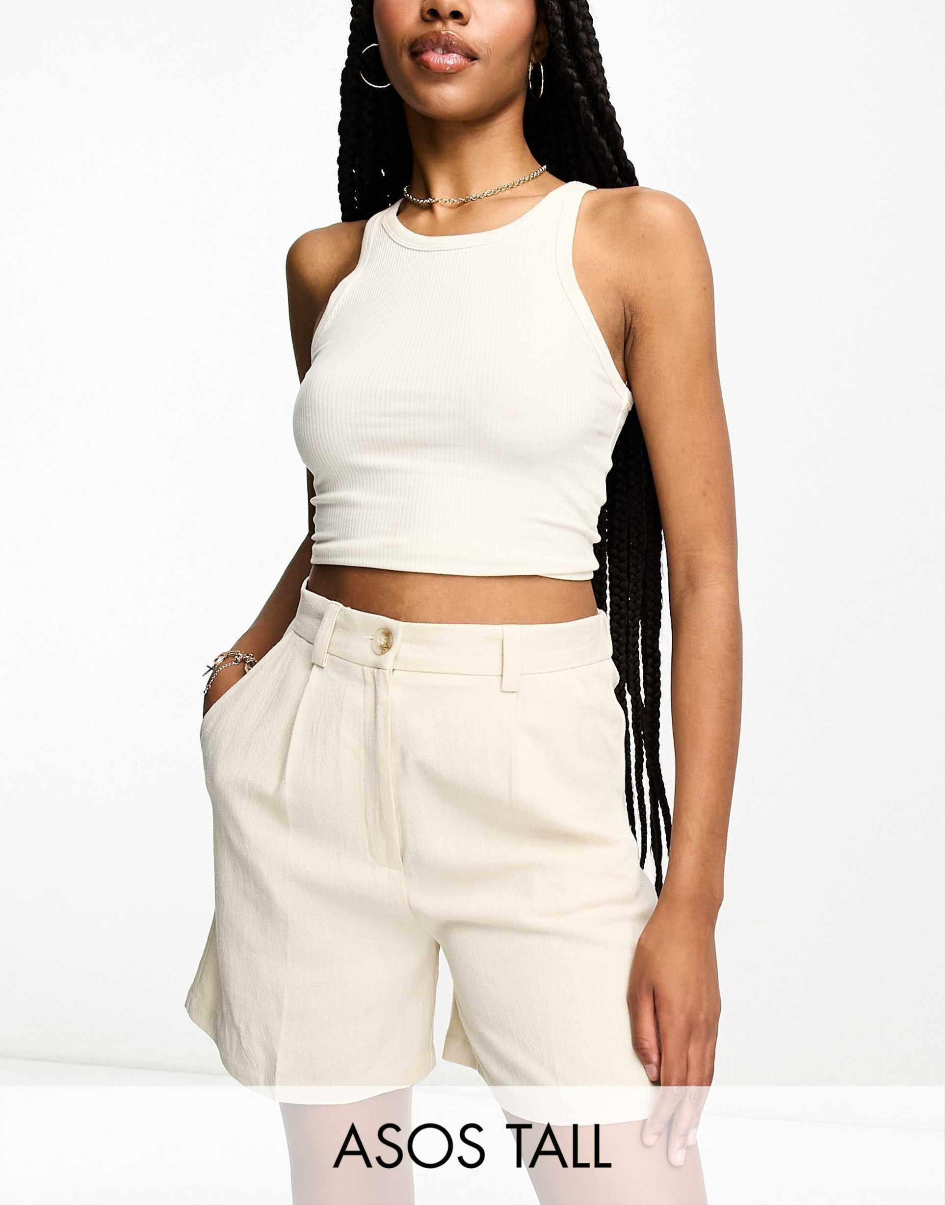 ASOS DESIGN TALL DAD SHORT WITH LINEN IN STONE