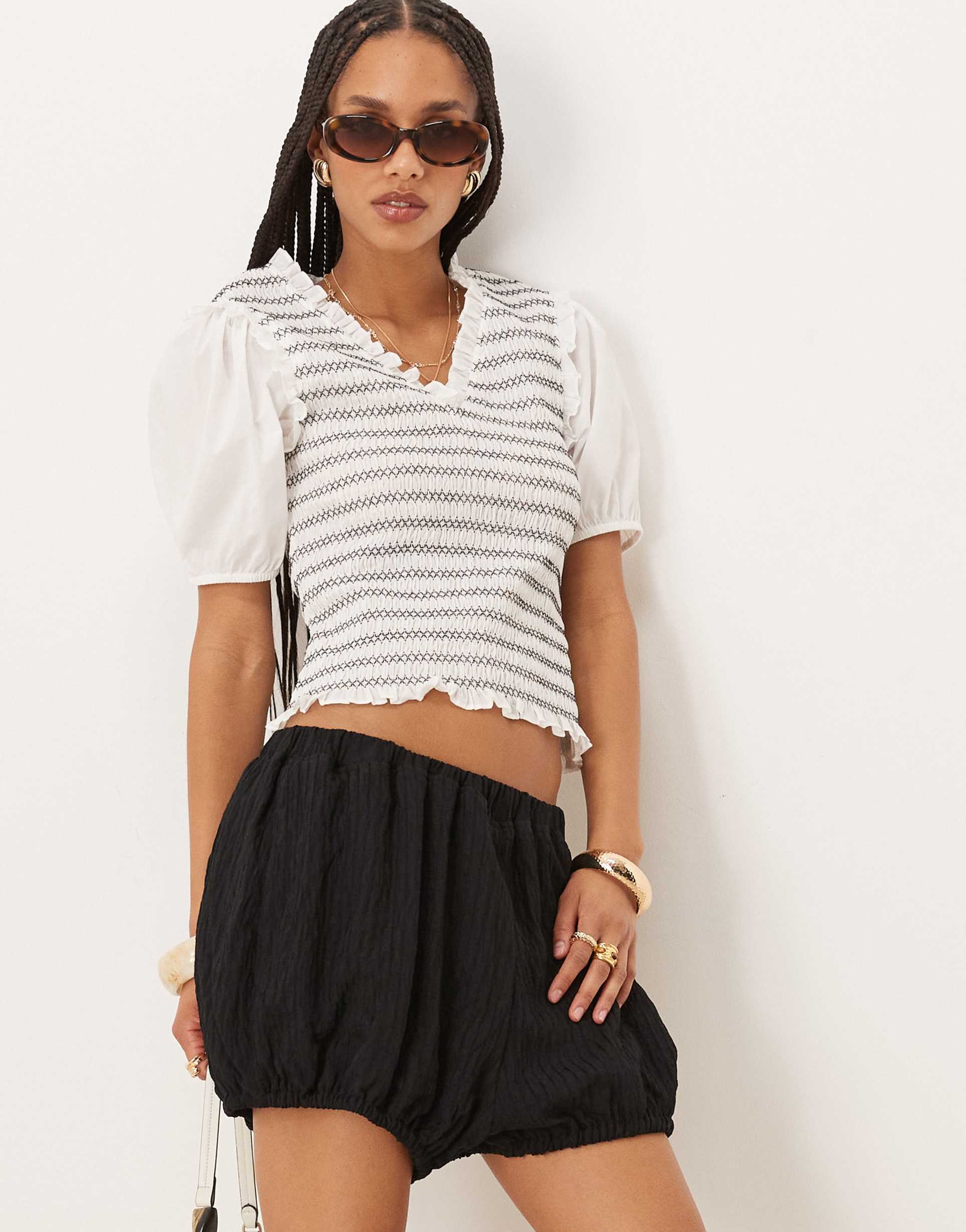 ASOS DESIGN TEXTURED STRIPED BLOOMER SHORTS IN BLACK