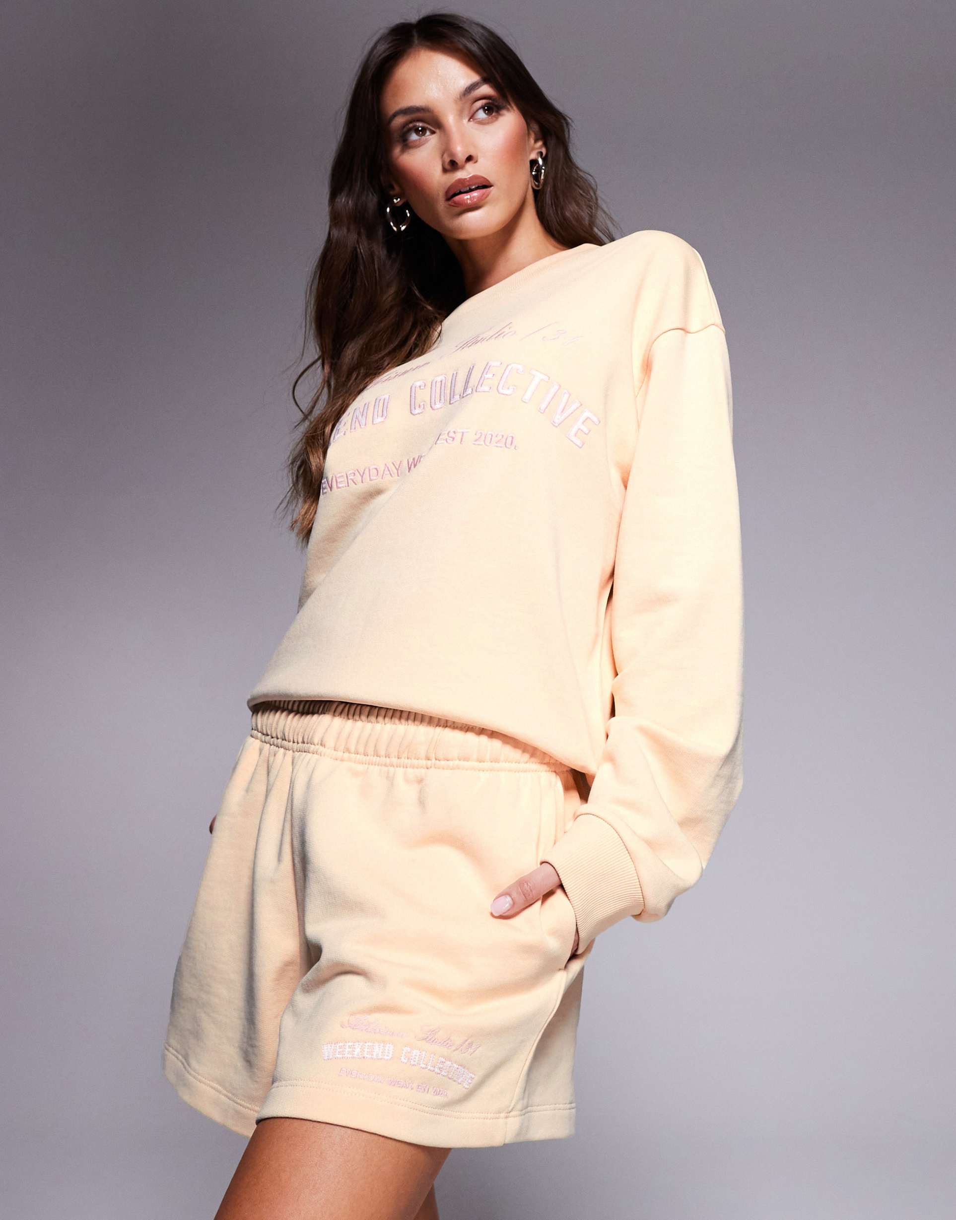 WEEKEND COLLECTIVE SHORTS WITH EMBROIDERED LOGO IN BUTTERMILK - PART OF A SET