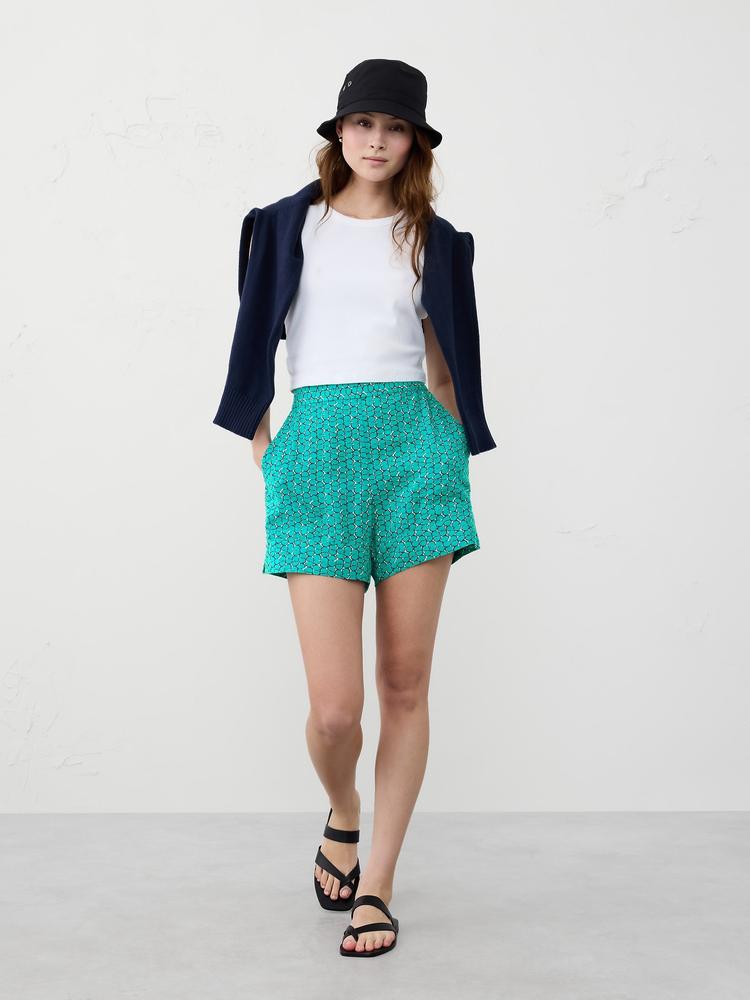 Step into sunny days with our Linen-Blend Pull-On Short, expertly crafted for a fresh, casual vibe. The geometric print adds a lively touch to the soft teal fabric, making these shorts an ideal wardrobe staple for your summer adventures. Designed with a comfortable elasticated waistband and a regular fit, they offer easy wear throughout the day. Perfect for beach trips, casual outings, or cozy weekends at home—these shorts will redefine comfort while keeping you stylish. Embrace the season and showcase your playful side with this chic addition.
