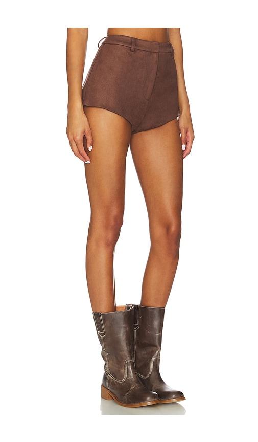BARDOT X REVOLVE JAYLA FAUX SUEDE MINI SHORT IN BROWN.
