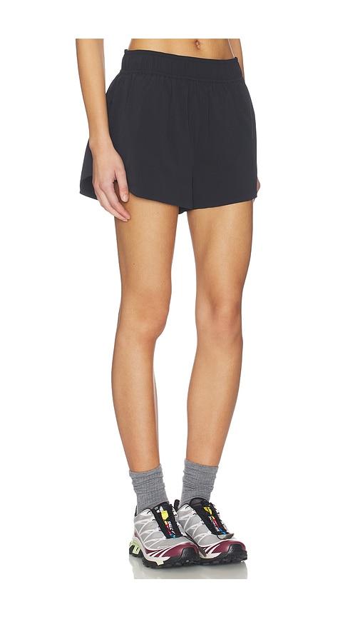 BEYOND YOGA BREEZE RUN SHORT IN BLACK.