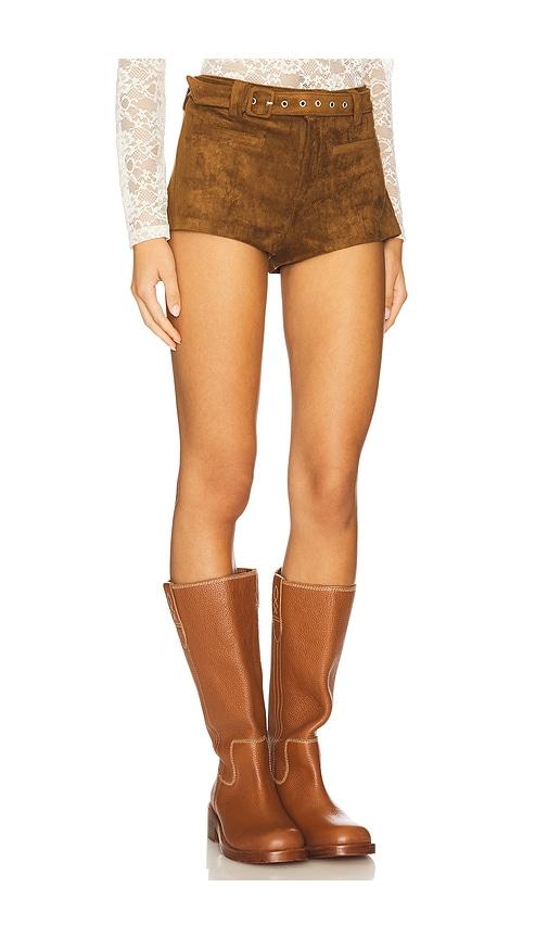 BLANKNYC FAUX SUEDE HOT SHORT IN BROWN.