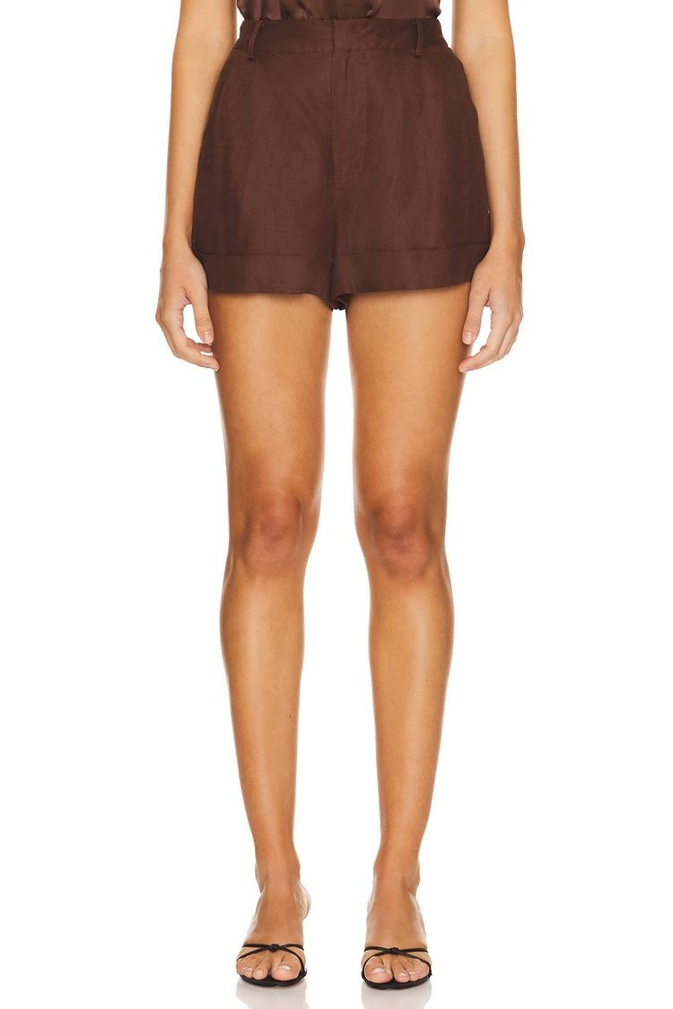 Elevate your warm-weather rotation with Ravi Short in a rich dark brown linen. The outer shell is 100% linen with a viscose lining for a smooth, cooling feel, finished with a discreet zip fly and hook‑and‑bar closure. A clean flat‑front waistband and a practical 4‑pocket design create a polished, versatile silhouette that hits at a flattering mid‑thigh (approx. 33 cm). Lightweight yet refined, they pair beautifully with a satin blouse for dressier days or a simple cami and sandals for daytime adventures. Dry clean only to preserve the texture and drape of the linen.