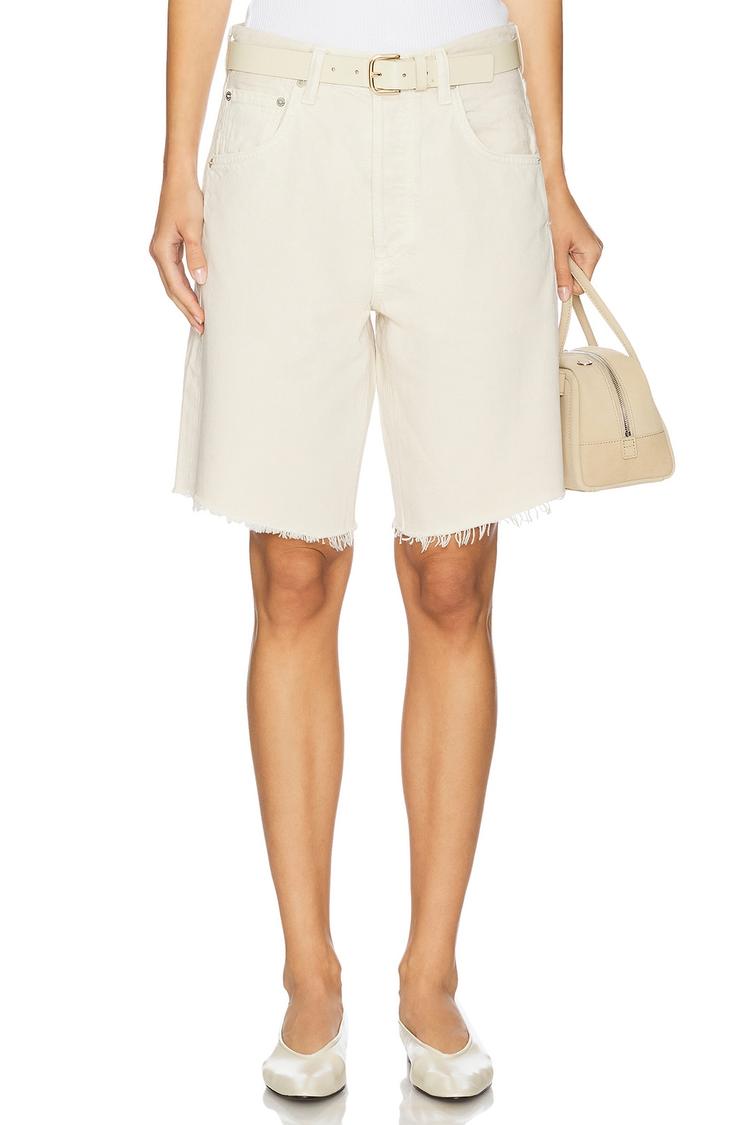 Effortless downtime-ready denim meets refined detail in these Ayla Shorts. Crafted in mid-weight cotton denim in a soft cream hue, they sit at a comfortable mid-rise with a classic button-fly and a timeless five-pocket silhouette. The raw-edge hem adds just the right edge for everyday wear, while belt loops invite a personal belt for a tailored touch. Pair with a lightweight tee and a denim jacket for cool-weather relevance, or dress up with sandals and a crisp blouse for a brunch-ready look. A versatile staple that moves from casual days to weekend adventures with polished ease.