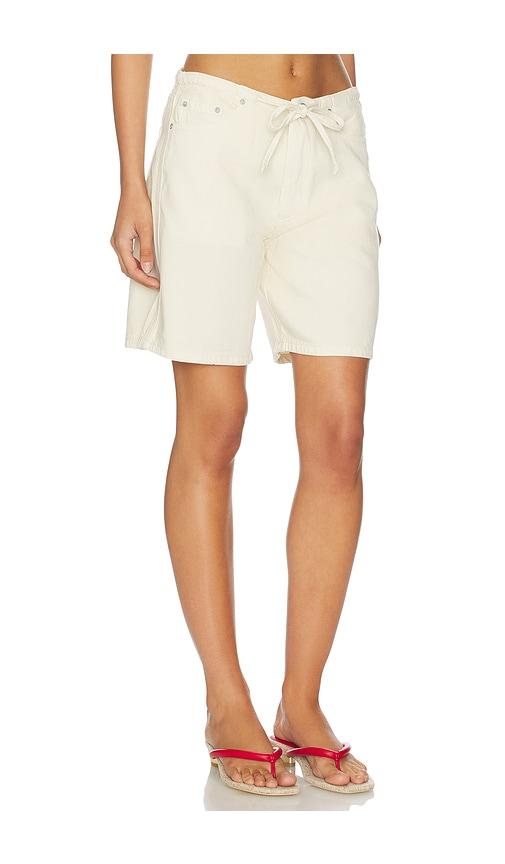 DL1961 SIENNA AURA RELAXED LOW SLUNG DENIM SHORTS IN CREAM.