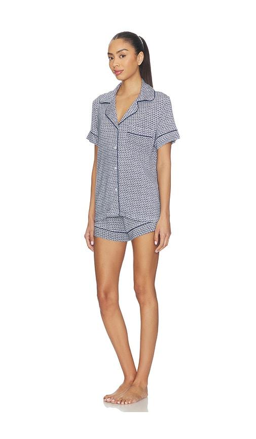 EBERJEY GISELE PRINTED RELAXED SHORT PAJAMA SET IN NAVY.