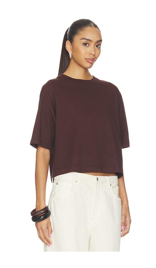 ENZA COSTA SHORT SLEEVE SUPIMA STRUCTURED TEE IN CHOCOLATE.