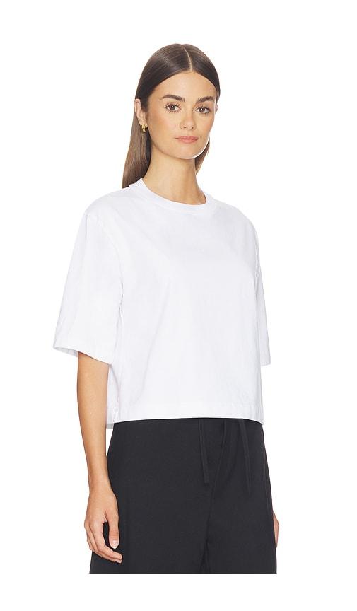 ENZA COSTA SHORT SLEEVE SUPIMA STRUCTURED TEE IN WHITE.