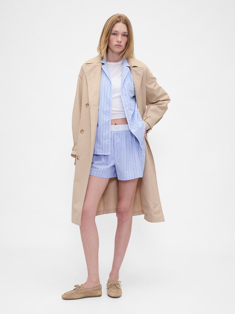 Unwind in ultimate comfort with these charming Poplin Logo PJ Boxer Shorts. Crafted from lightweight cotton poplin, these shorts feature a refreshing light blue and white striped pattern that embodies a timeless appeal. With a flat-front waistband for a relaxed fit and a stylish flair, they are perfect for cozy nights in or lazy weekend mornings. Pair them with your favorite tank top or t-shirt for an effortlessly chic loungewear look. Dive into relaxation, where style meets comfort in every stitch!