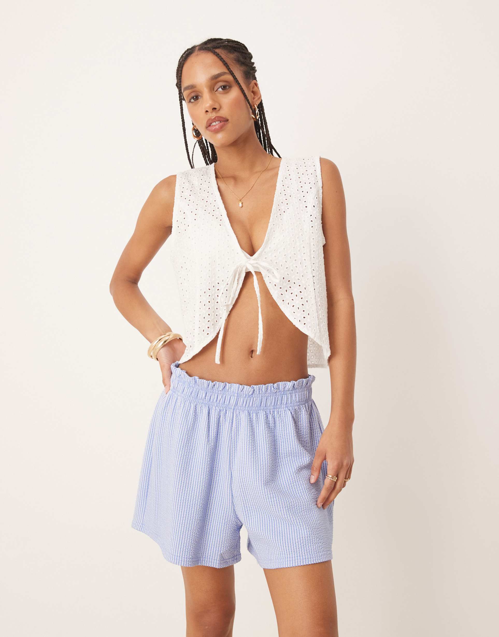 GINA TRICOT SEERSUCKER SHORTS IN BLUE PLAID