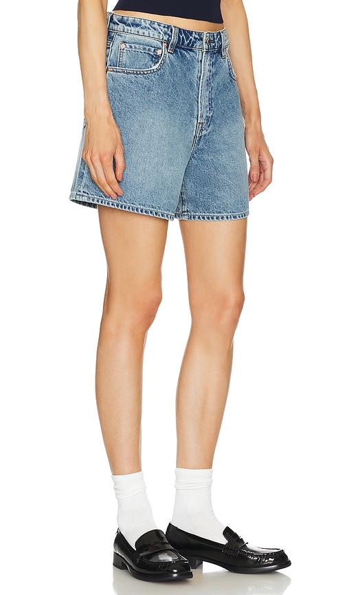 GRLFRND REGGIE MID RISE LONG MOM SHORT IN DENIM-MEDIUM.