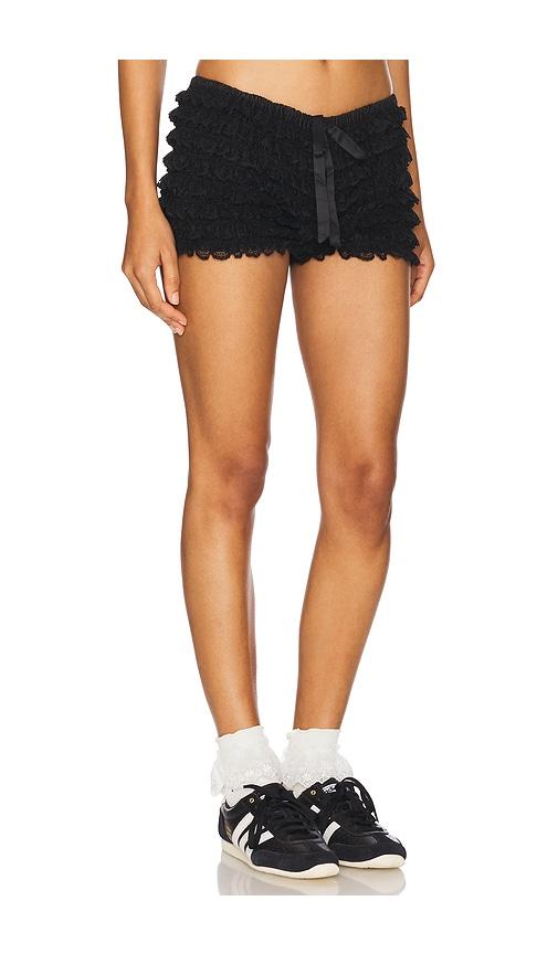 GUIZIO LENA RUFFLE HOT SHORT IN BLACK.