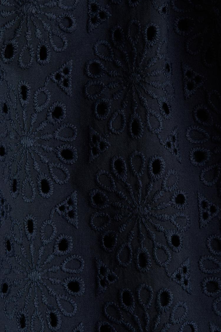 Elevate your warm-weather looks with these Eyelet-Embroidered Shorts in a rich navy. The loose-fit cotton silhouette sits high on the waist, cinched by a ruffle-trimmed, elasticized waistband and a slim drawstring for a customizable fit. Fully lined for comfort, the delicate eyelet embroidery adds a romantic, feminine touch without sacrificing breathability. Perfect for sunny brunches, beachside lunches, or resort-ready strolls, these shorts transition from poolside to street with easy charm. A versatile staple that pairs beautifully with a striped top, light cardigan, or a breezy beach cover-up.