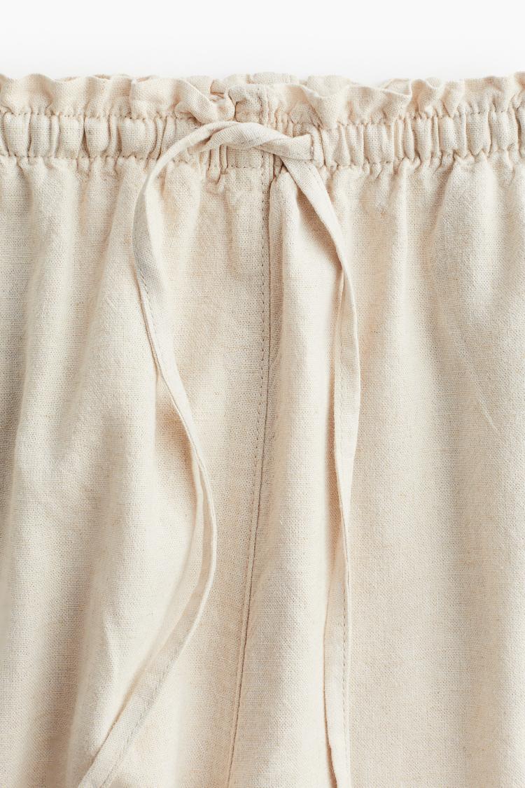 Shorts in an airy, woven linen blend. High, ruffle-trimmed waist, narrow drawstring and covered elastic at waistband, and discreet side pockets.