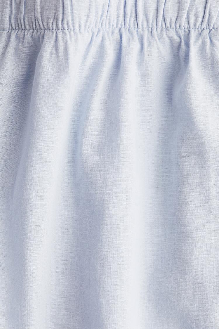 Experience effortless ease and understated style with these light blue linen-blend shorts. Featuring a relaxed fit and a comfortable elasticated waistband, they offer breathable, lightweight comfort perfect for warm weather. The clean hemline and simple solid color make these shorts versatile for casual outings, lounging at home, or vacation days. Equipped with practical side pockets, they blend functionality with a minimalist aesthetic. Ideal for spring and summer, these shorts are a timeless staple that adds a fresh, modern touch to your everyday wardrobe.