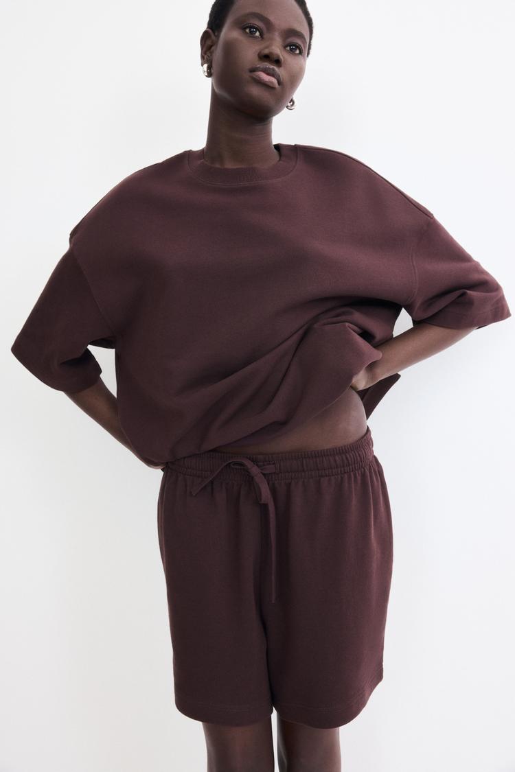 Cozy meets contemporary in these maroon loose-fit sweatshorts. Crafted from soft cotton, the relaxed Bermuda silhouette drapes with easy, casual confidence. An elasticized waistband with a drawstring lets you tailor the rise, while discreet side pockets keep everyday essentials close at hand. The solid, rich maroon hue pairs effortlessly with oversized tees, cropped hoodies, or lightweight knits for a laid-back day at home or casual errands. With a clean hem and breathable texture, this versatile staple brings warmth and understated style to slow weekends and city strolls alike.