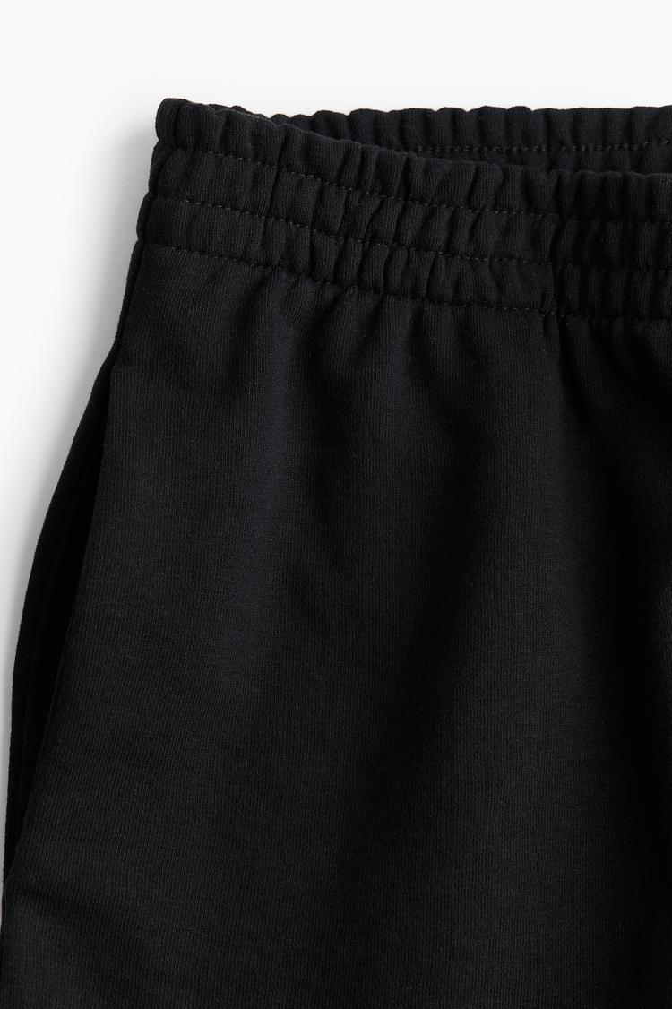 black cotton blend sweatshorts with smocked waistband