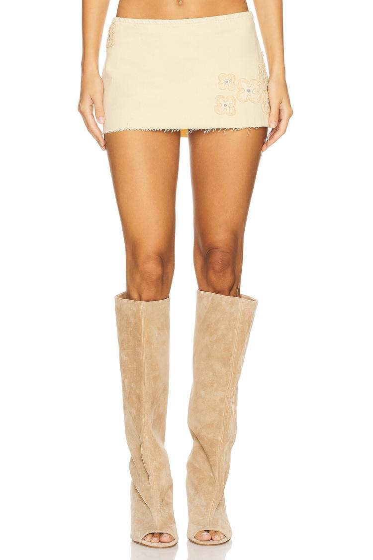 Effortless beige denim-inspired Fauna Skort from I.A.M.GIA brings playful florals to a modern mini. The exterior blends cotton denim with a short lining for modest coverage, while delicate floral embroidery accents the front with feminine charm. A hidden side zipper ensures a clean, seamless silhouette, and the high-rise waistband flatters the waist for a confident look. The raw-cut hem adds an edge to this versatile piece, perfect for brunch, a sunlit date, or a weekend getaway. Dress it up with a crop top or keep it casual with a knit—the Fauna Skort proves chic can be effortless.