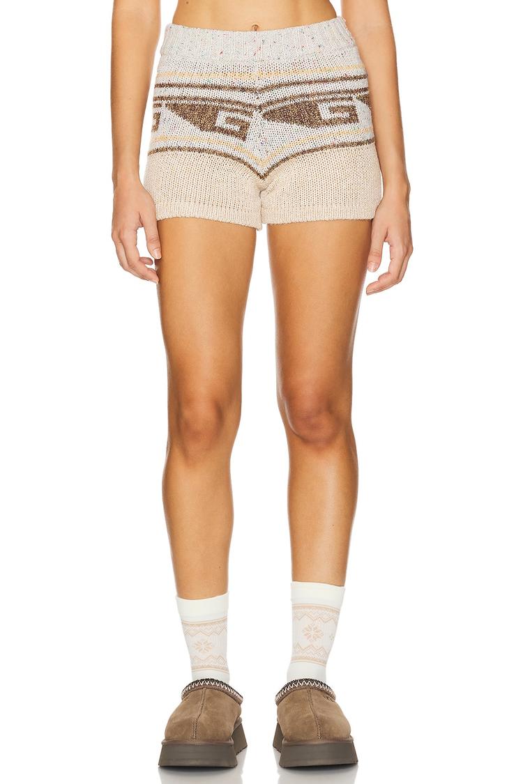 Step into easy, sun-ready style with the Paella Shorties. This knit Bermuda short in creamy beige sets a relaxed, bohemian tone with a bold geometric print in rich brown. Crafted from 100% polyester with a soft-knit hand, the pull-on elastic waistband flatters at the waist while keeping you comfortable through long days. The mid-thigh length and clean hem keep the silhouette modern, whether you pair with a breezy tee for casual lunches, a bikini top for resort days, or a lightweight cardigan for cooler evenings. A versatile warm-weather staple with boho-chic charm.