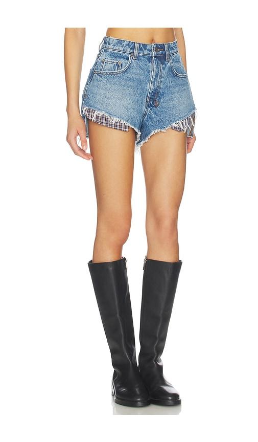 KSUBI KUT OFF DENIM SHORT IN BLUE.