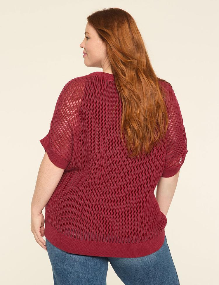 Available in Plus Size Short sleeves and soft stitching that's perfect for the seasons between seasons - this sweater is about to become your softest essential. FIT: Relaxed. An easy silhouette that fits away from the body. Front Length (On Body): 29" Standard length FEATURES: V-neck Short sleeves Ribbed trim FABRIC: Soft sweater knit Machine Wash 60% Cotton/40% Poly Item Number #412641 Imported Plus Size Top ". Plus Size Relaxed Short-Sleeve Stitch Sweater, in Rumba Red, 14/16, Women's, Lane Bryant