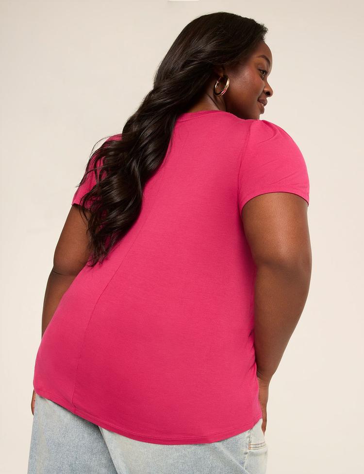 Embrace effortless everyday style with this bright pink plus-size tee designed for comfort and versatility. Crafted from soft, stretchable modal blended with elastane, it offers a flattering regular fit that gently skims the body. The double crew-neck and short sleeves add subtle detailing to this classic casual top, while the longer curved hemline ensures added coverage. Perfect for pairing with relaxed denim or casual bottoms, this tee transitions seamlessly from home lounging to casual outings. Machine washable and easy to care for, it’s a wardrobe essential for those who value both comfort and a pop of vibrant color.