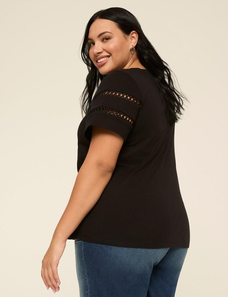 SHORT-SLEEVE V-NECK CROCHET TEE