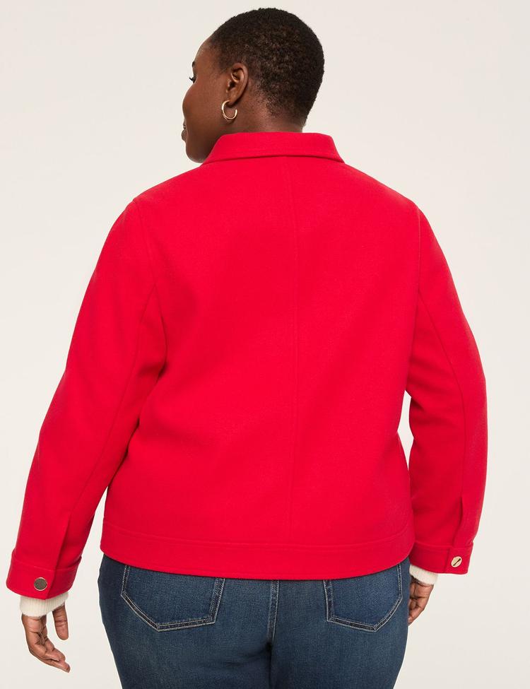 Embrace cozy sophistication with this plus size snap-button collared short jacket in a vibrant bright red hue. Crafted from soft-touch polyester fabric, it features a classic collar, long sleeves with snap button closures, and chic goldtone buttons that add a touch of elegance. The regular fit is designed to flatter curves without being too tight or loose, while the cropped length makes it perfect for layering over your favorite outfits. Functional front pockets provide practicality alongside style, making this jacket ideal for casual outings, workwear, or travel during cooler seasons. Elevate your wardrobe with this timeless and versatile layering essential.