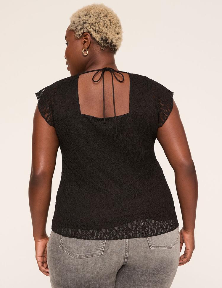 Fall in love with refined ease in this Tie-Back V-Neck Lace Top from Lane Bryant. A soft knit base is enveloped in delicate lace, creating a subtly romantic texture that's equally polished for work or weekend alike. The flattering V‑neck and princess seams sculpt a smooth silhouette, while cap sleeves keep it effortless. The back features a self‑tie detail, adding a flirt of adjustable ease. Pair with tailored slacks or a blazer for office polish, or dress it down with dark denim for date night. A versatile piece that elevates every curves-forward closet.