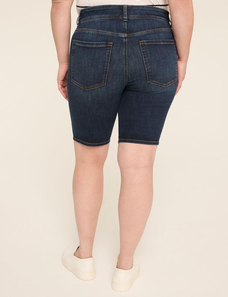 Experience the perfect blend of comfort and flattering fit with these Tighter Tummy Mid-Rise Bermuda Shorts from Lane Bryant. Crafted from ultra-soft, lightweight denim, these plus-size shorts feature a patented T3 reinforced high-rise panel that smooths and slims your tummy while providing extra coverage with a below-the-knee length. The flat-front waistband, classic button and zip fly closure, and strategically placed back pockets enhance your silhouette with a subtle booty lift. Ideal for casual outings, travel, or brunch, these breathable and stretchable shorts offer everyday versatility with a modern, clean-cut look that complements your curves effortlessly.