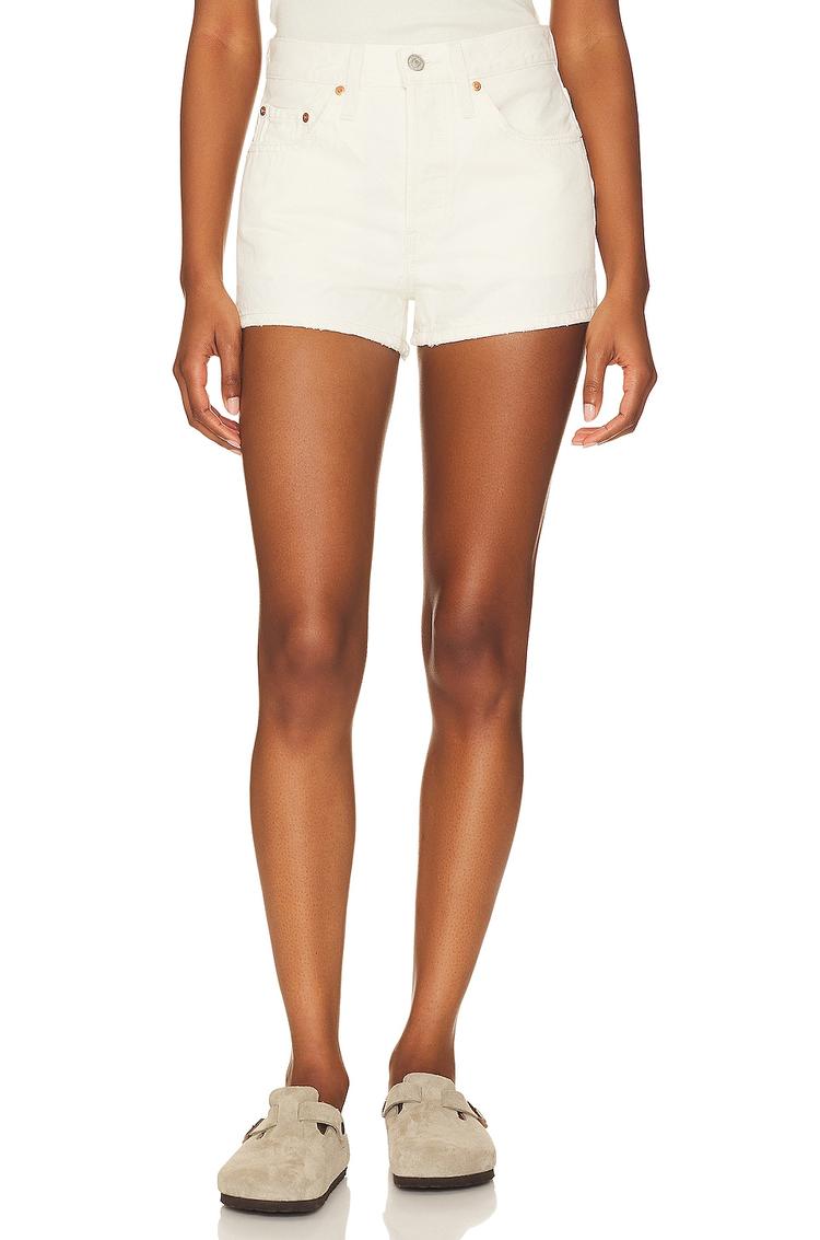 Effortless summer staples meet timeless denim in this Levi's 501 Original Short in crisp white. Crafted from 100% cotton for breathable comfort, it sits at a flattering mid-rise with a classic button-front fly and the iconic five-pocket silhouette. The hem is intentionally frayed for a casually chic edge, while the clean, solid white finish keeps styling endlessly versatile. Pair with a tucked tee and sneakers for everyday wear, or dress up with a flowy blouse and sandals for brunch or a beach day. A durable, wardrobe-defining short that ages beautifully with wear.