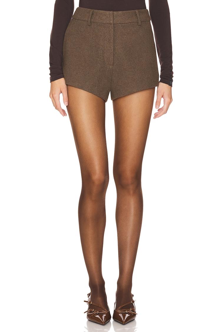 Refined and versatile, these Dockers micro shorts in a rich tweed brown bring tailored polish to every warm-weather outfit. The mini silhouette sits flatteringly at the waist with a clean flat-front waistband and classic belt loops, finishing in a crisp, clean hem. Crafted from a luxe wool-blend (polyester-wool-rayon-spandex) fabric, the texture reads tweed with subtle depth, perfect for layering under a structured blazer or pairing with a lightweight knit. A discreet zip fly with hook-and-bar closure and side pockets add practical polish. Dress them up with loafers and a silk blouse or keep it casual with knit sandals and a tee.